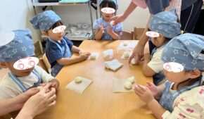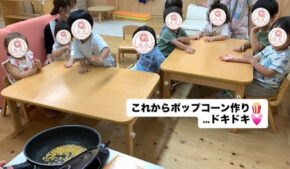 P-kaboo園では、とうもろこしの皮むき後に、ポップコーンを作る食育活動を行いました。