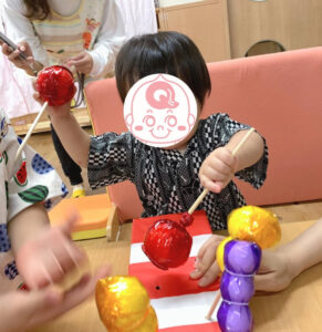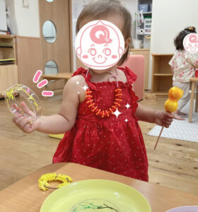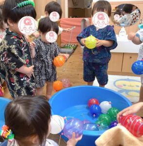 先日、きゅーぴーるーむ新大塚園でなつまつりごっこをしました🌻