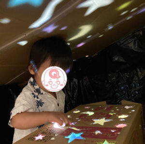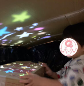 保育者の力作✨プラネタリウムは、天井に映るキラキラの星たちに「うわー…!」と、どの子もうっとりでした☺️💫