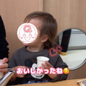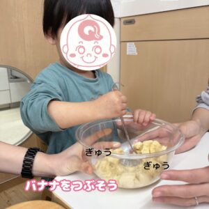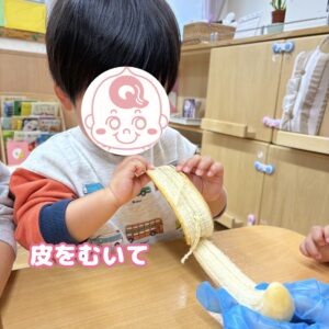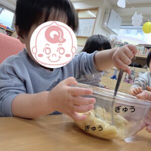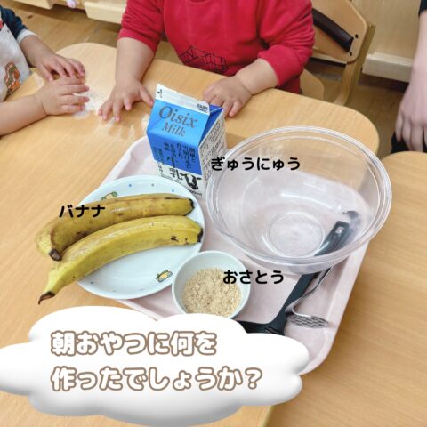 「あまいね」「おいしいね〜」とみんなニコニコ。楽しい朝おやつタイムになりました🎶