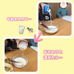 実は以前も作ったことがあったのですが「またバナナスムージー作りたいな〜」という話が子どもたちから出たのをきっかけに、みんなで栄養士の先生にお願いして実現したクッキングでした🤭