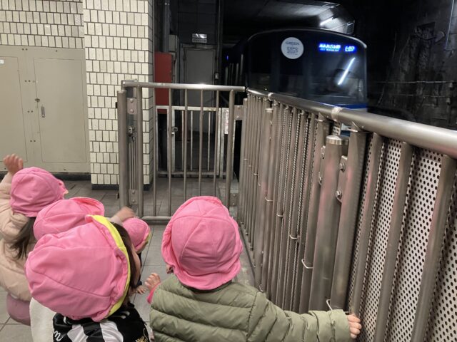 端に移動して待っていると、「電車くるかな?」とワクワクした様子の子どもたち!そして目の前にブルーラインが到着すると、「きたー!」と大喜び。キラキラした表情で夢中になって見つめていましたよ☺️