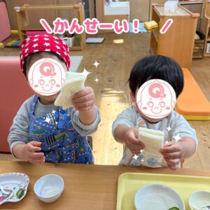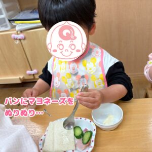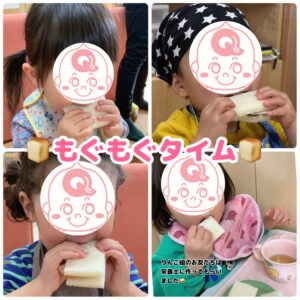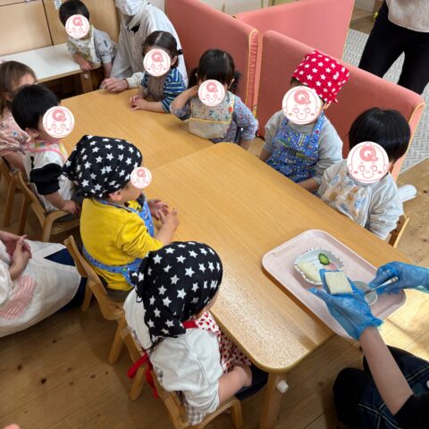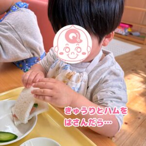 自分で作ったサンドイッチは格別で、おいしいね、と笑顔がいっぱいのおやつタイムになりました!😋
