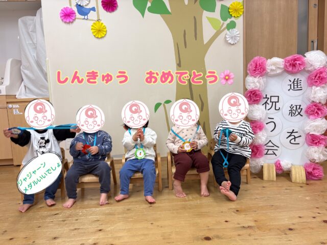 みんな、1つお兄さんお姉さんになり、進級のお祝いをしました!