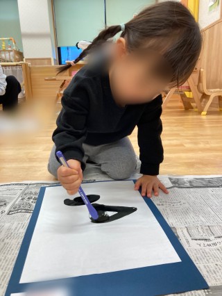 きゅーぴーるーむ大倉山園ではお正月遊びとして書初めを行いました🖌